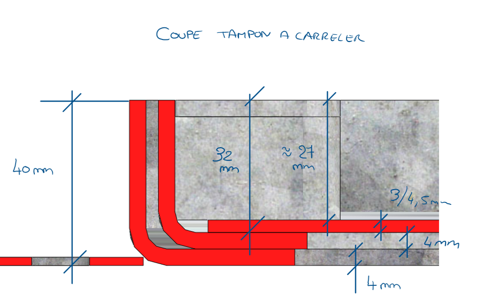 - Pose sur dalle carrelée (en rénovation) : on découpe le carrelage existant et on scelle le tampon dans un mortier-colle.