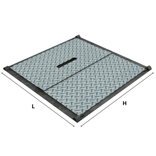 - Ouvrant réalisé en tôle acier larmée antidérapante d’épaisseur 3/5 mm.