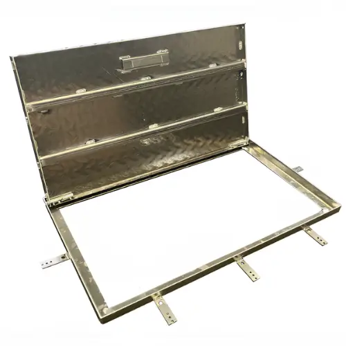 • La trappe est en aluminium, nous vous proposons le même modèle en inox 304L ou en acier galvanisé