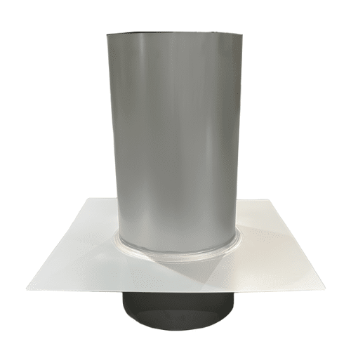 - La traversée de toiture, en acier galva dispose d’une platine plate permettant une parfaite stabilité offrant l’assurance d’une réalisation parfaite de l’étanchéité en pied.